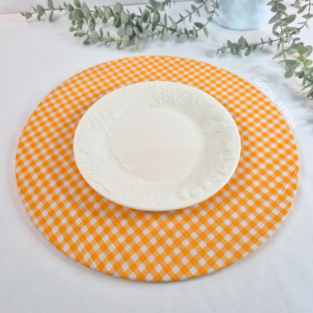 Individual circular para base de madera cuadrille amarillo